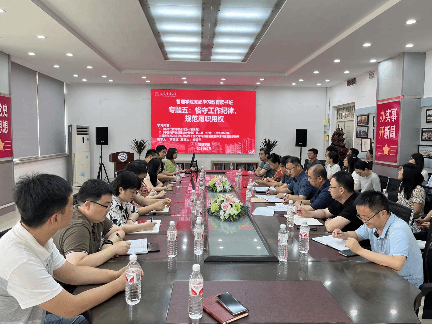 7月5日,公司党委举办第五期党纪学习教育读书班,本次学习以“恪守工作纪律,规范履职用权”为主题,学院班子成员、党支部书记参加了活动。